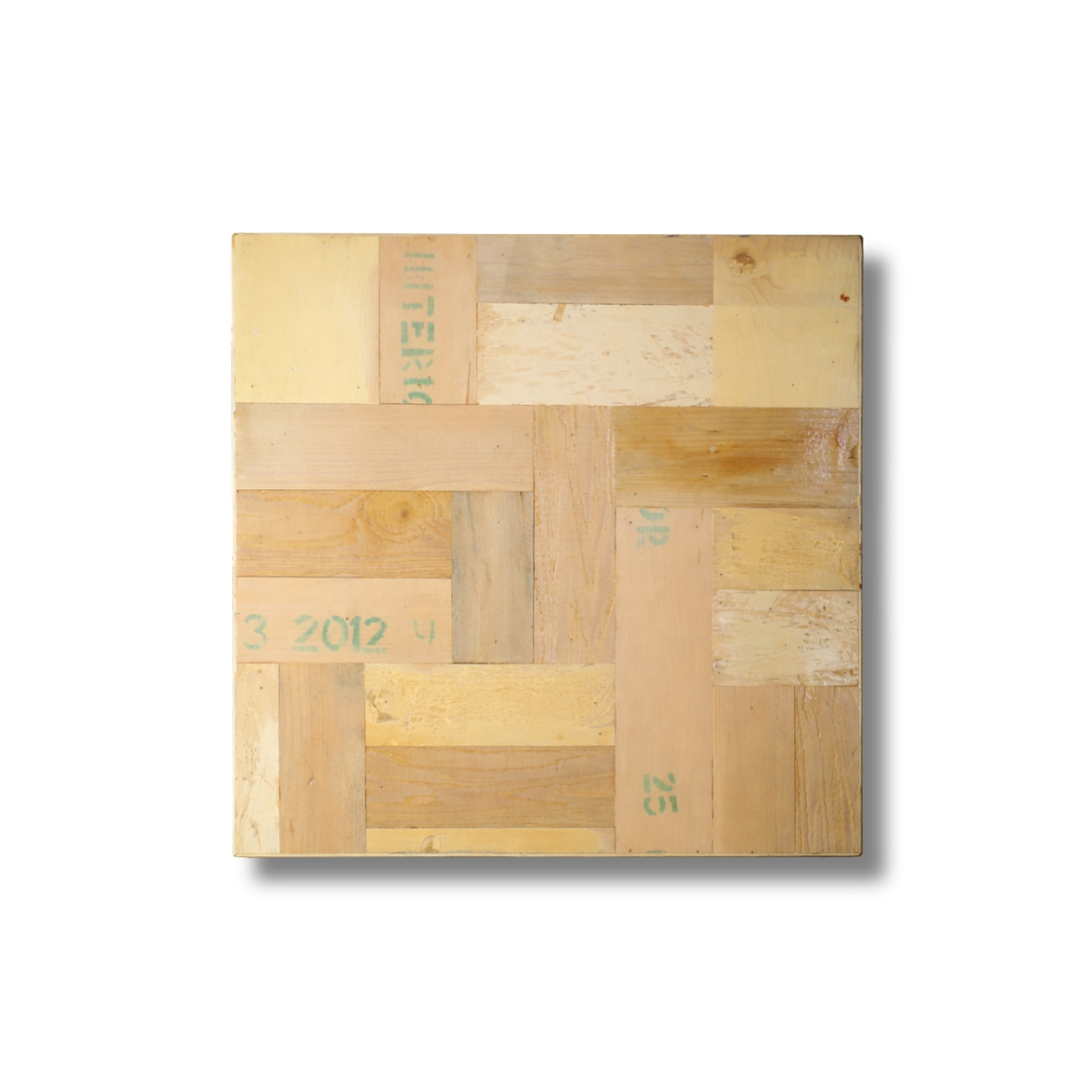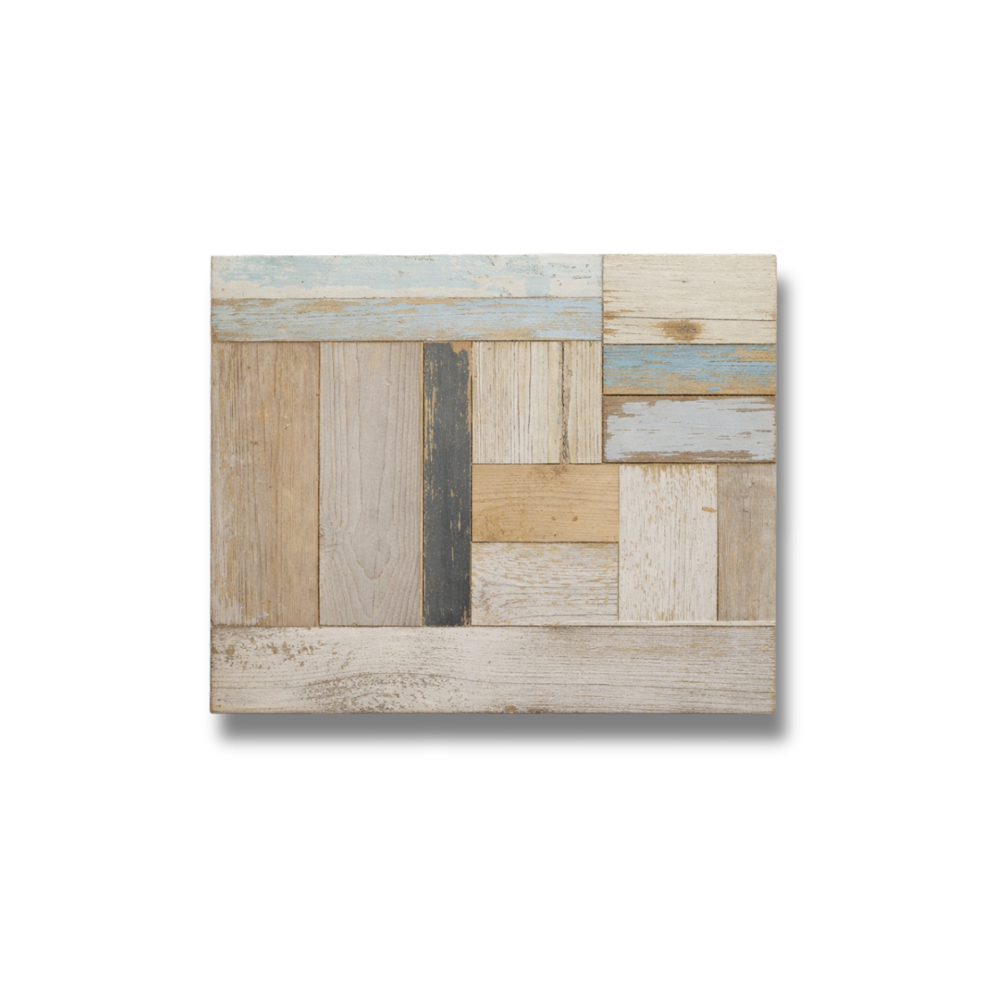 Pattern di essenze naturali a composizione ortogonale, con variazioni di formato e ritmo irregolare.