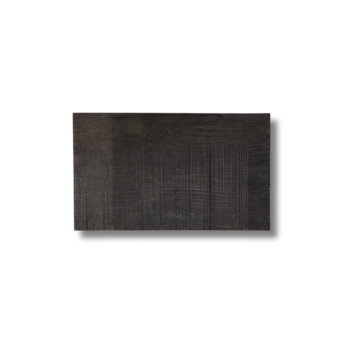 Superficie compatta a tavole accostate, trattata con finitura scura. Il disegno delle venature emerge in controluce, con un effetto profondo e materico.