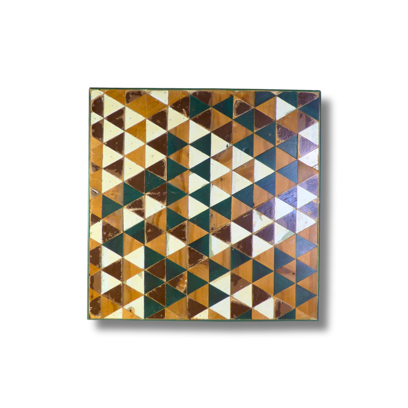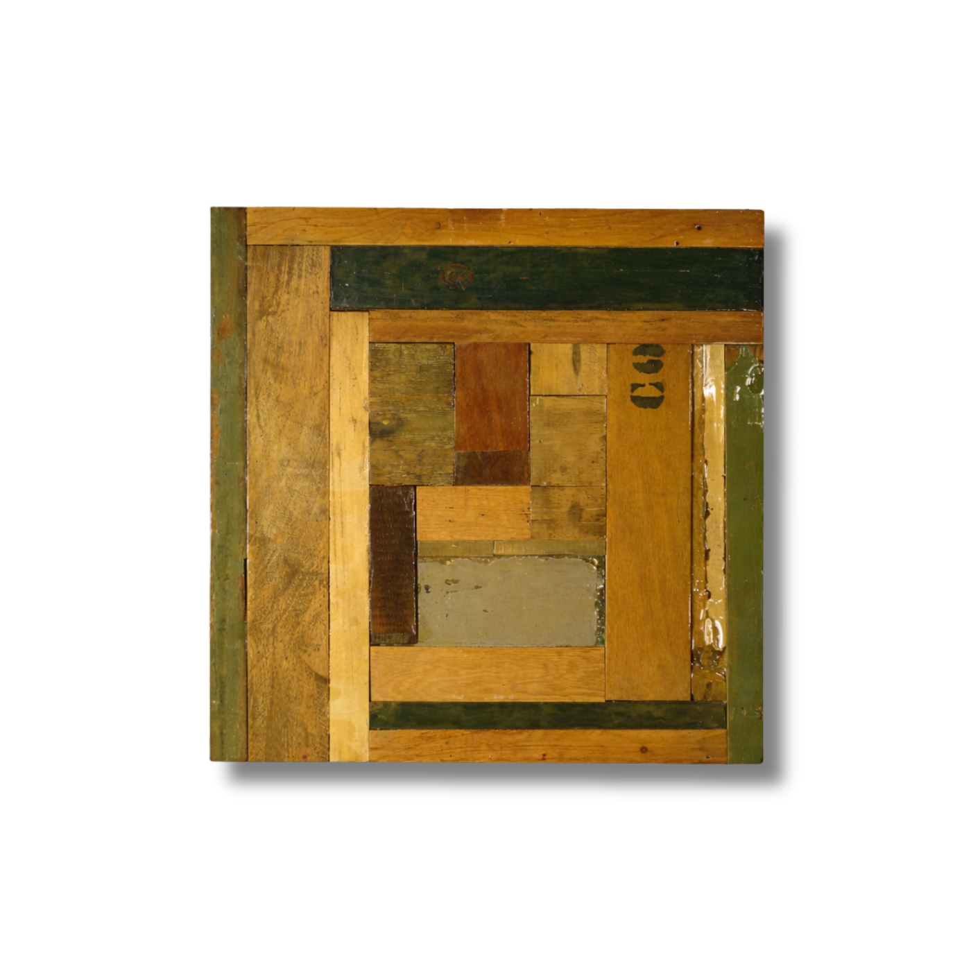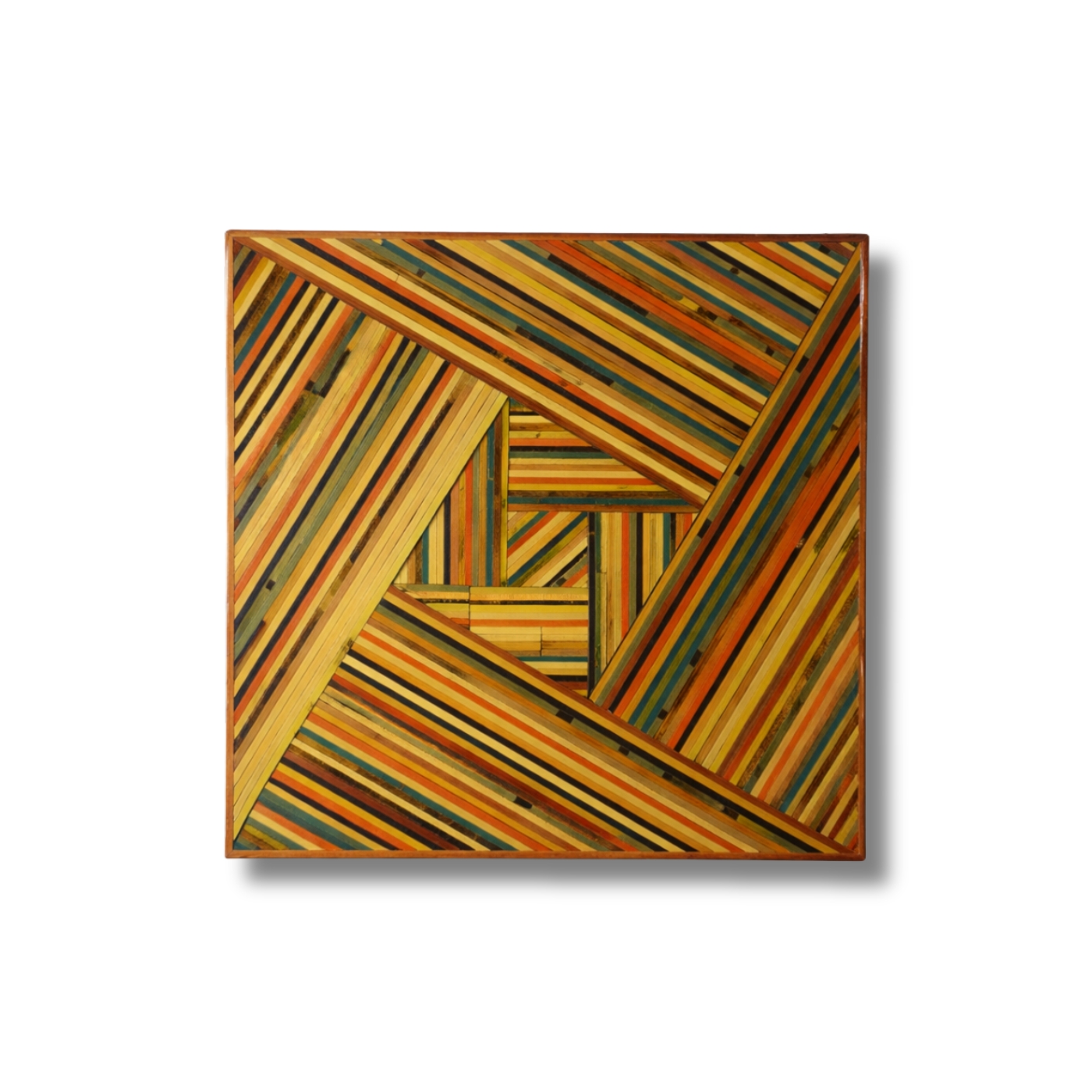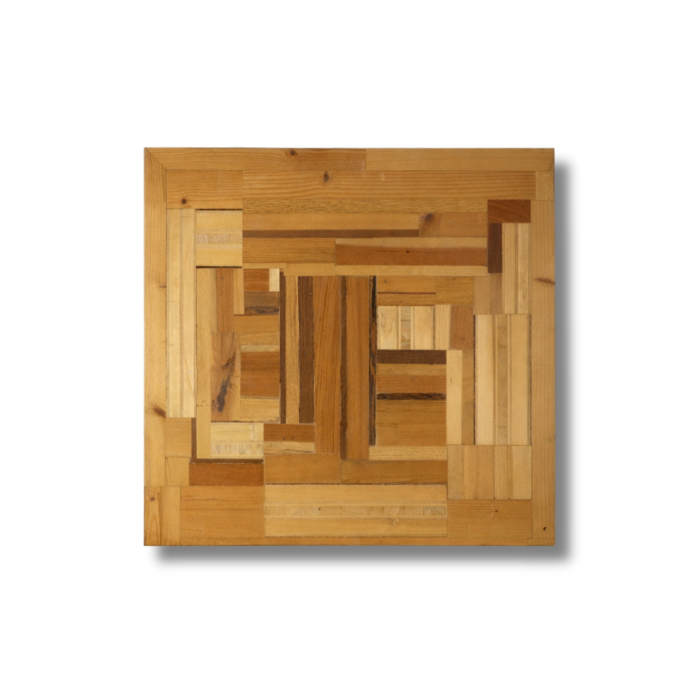 Pattern a composizione concentrica con cornici successive in legno di recupero.