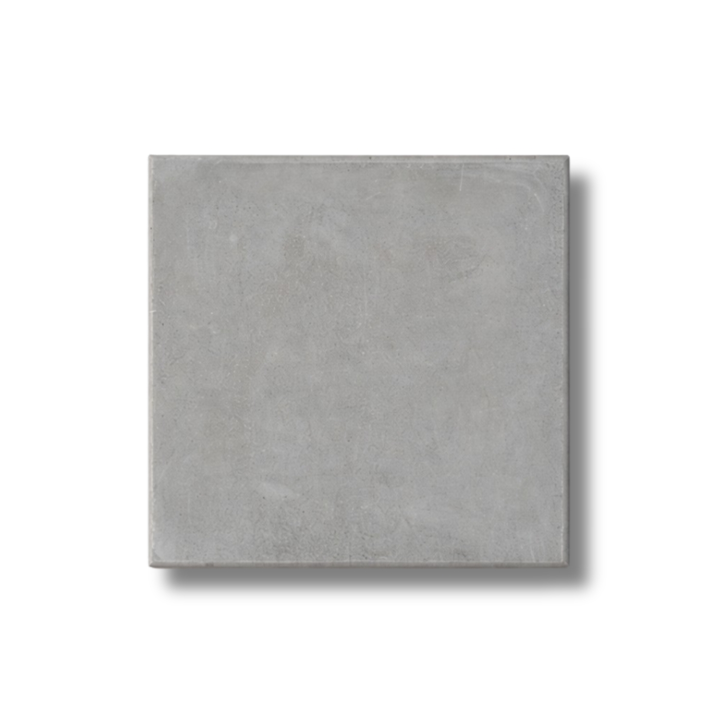 Mattonella di cemento in tonalità grigio chiaro, con texture opaca e uniforme. La superficie è neutra e stabile, attraversata da leggere variazioni cromatiche.